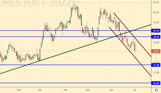 Fall scenario: we will keep open short two weeks ago with targets at 16.50. Sellers are in complete control.