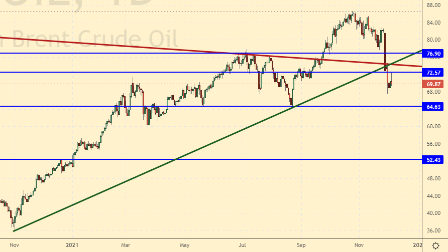 Judging by how quickly fears about the omicron strain diminish, oil will not be under pressure from the pandemic. It cannot be ruled out that prices will fall to the level of $ 60.00 per barrel of Brent crude, but lower levels are unlikely to be reached, since if this happens OPEC + will certainly reduce the supply on the market. And those who are lucky enough to be born inside the golden billion will have to hope that in a severe frost there will be at least some wind, and this is not a joke. If wind generators stop in winter, London and Paris have a risk of freezing.