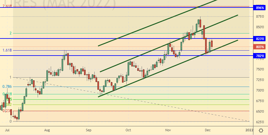 Heavy rains in Australia improved the country’s wheat harvest forecast by 1.8 million tons to 34.4 million tons, which was greeted positively by traders. Wheat prices on the Chicago Stock Exchange tried to go below 780 cents a bushel, but traders greeted the market with active buying, which again brought quotes back above 800.0.