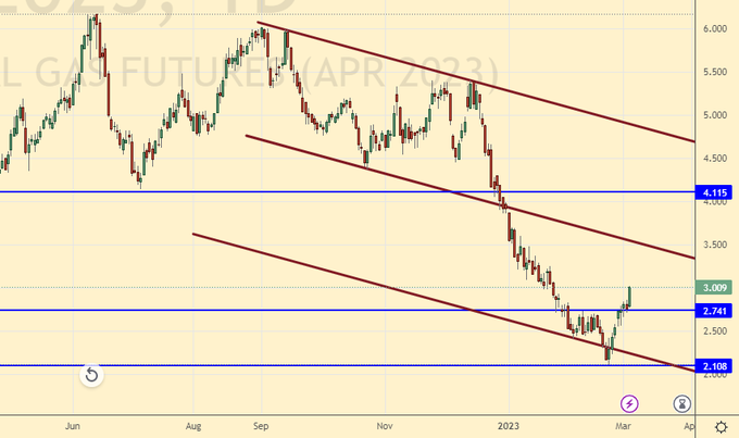 The United Arab Emirates is considering withdrawing from the OPEC+ deal. Most likely, this is just a stuffing in order to test the waters, but what we previously only assumed is now taking shape: a struggle begins for falling volumes of Russian oil. If Russia reduces supplies by 0.5 million barrels per day in March, then someone can increase them without harm to the system. But in order to be able to bring as much as possible to the market, without discussing the issue of quotas and shares with other participants, this very agreement must be withdrawn. If the deal to cut production falls apart, it could lead to a drop in prices. However, in practice, we do not see a downward reversal. Most are waiting for the Chinese dragon to wake up in the spring and start consuming a lot of fuel.
