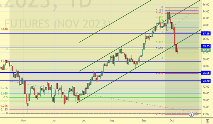 Growth scenario: we are considering November futures, expiration date is November 30. Surprise. They fell hard. We will buy from 80.50. We are likely to have a volatile week in the oil market due to the attack on Israel.