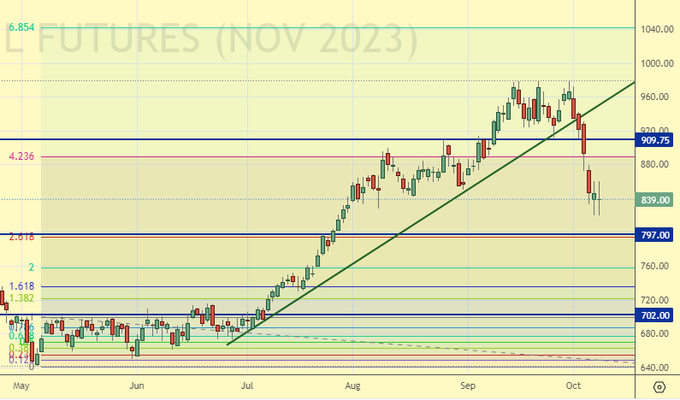 Growth scenario: we are considering November futures, expiration date is November 10. At this rate we can fall to 700.0. Let us note that the ban on the export of diesel from the Russian Federation does not concern the market.