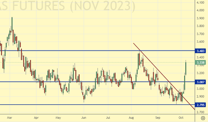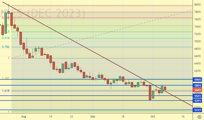 Growth scenario: we are considering November futures, expiration date October 20. Due to the conflict in the Middle East, it is extremely difficult to predict anything. But an increase in volatility is most likely guaranteed.