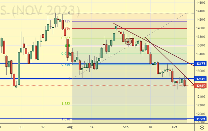 Fall scenario: keep short. We have consolidated under 1281, the mark of 1190 awaits us ahead. Those who wish can increase their shorts a little, by 20%.