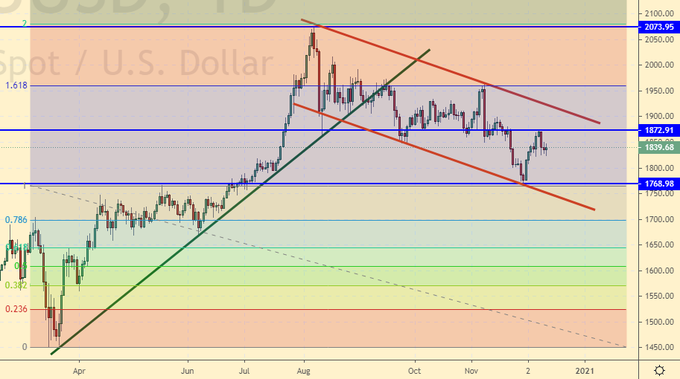 Growth scenario: while gold is below 1900, sellers will have the advantage. There is a chance of growth here, but we would like to see a drop towards 1820 in order to buy as low as possible. However, if the electors vote for Biden, then gold will begin to grow on Tuesday.