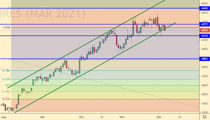 Growth scenario: December futures, expiration date December 14. Having passed the level of 600.0, the bulls could not return. They will now prepare to meet the market at 560.0.