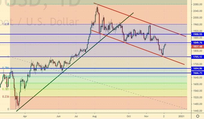 Growth scenario: there is no doubt that we will touch 138000. Then a pullback to the 126000 area should follow, after which the upward movement may resume. If Biden does not make harsh statements in the direction of Russia, then we can meet the second half of December in high spirits.