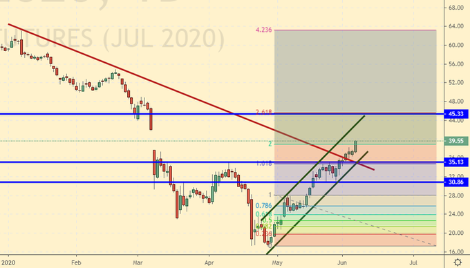 Growth scenario: July futures, expiration date July 10. Growth to 430.0 is possible. Therefore, keep longs even if at 350.0 sellers will meet the market.