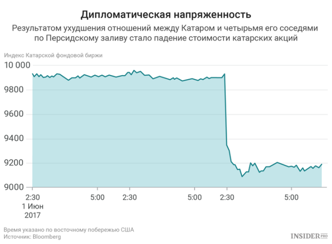 Аналитики говорят, что это беспрецедентный шаг. Из-за грозящей ведущему производителю сжиженного газа региональный блокады упала стоимость акций катарских компаний, а мировые цены на нефть, напротив, выросли.