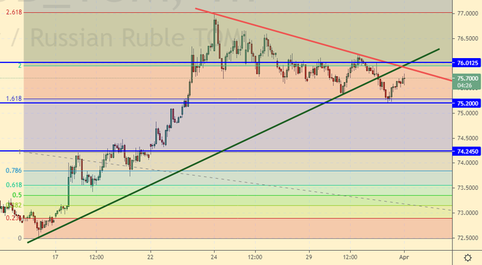 Покупка: при падении к 74.30. Стоп: 73.80. Цель: 80.00. Думать после роста выше 76.00.
