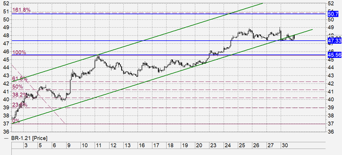 Покупка: нет. Кто в позиции от 45.00, держите стоп на 46.80. Цель: 49.80.