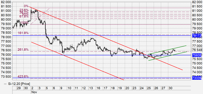 Покупка: сейчас. Стоп: 75900. Цель: 79000. Кто в позиции от 76600, держите стоп на 75900. Цель: 79000 (возможен пересмотр).