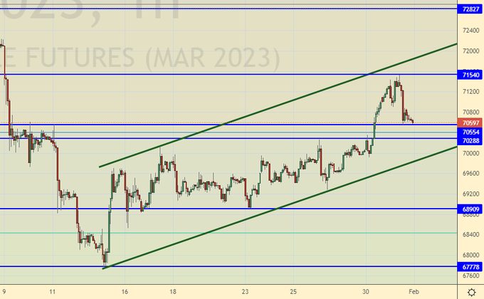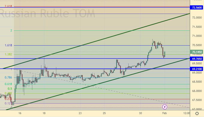 Покупка: при подходе к 69.50. Стоп: 68.20. Цель: 88.00. Кто в позиции от 70.00, держите стоп на 68.20. Цель: 88.00.