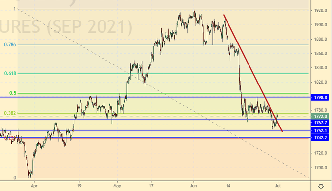 Продажа: нет. Кто в продаже от 1770, перенесите стоп на 1778. Цель: 1700?