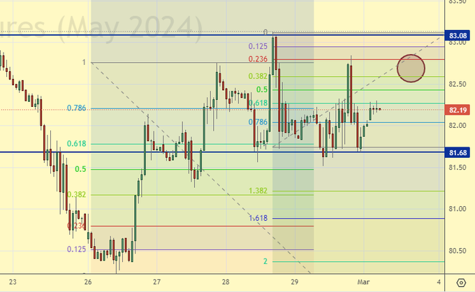 Продажа: при подходе к 82.70. Стоп: 82.90. Цель: 68.00. Кто в позиции от 82.70, держите стоп на 82.90. Цель: 68.00.