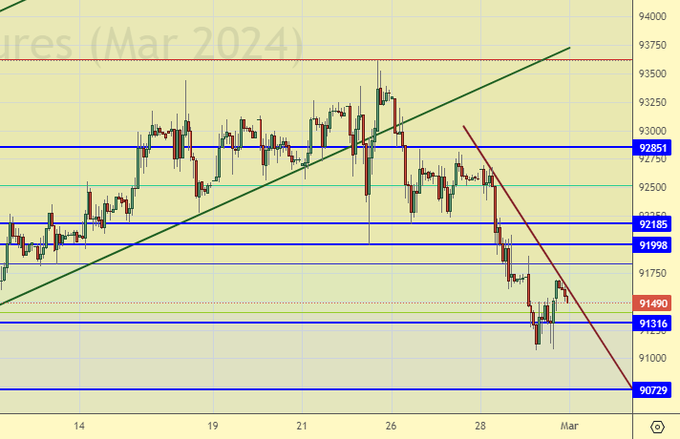 Продажа: нет. Кто в позиции от 92.19, перенесите стоп на 92.30. Цель: 85.00.