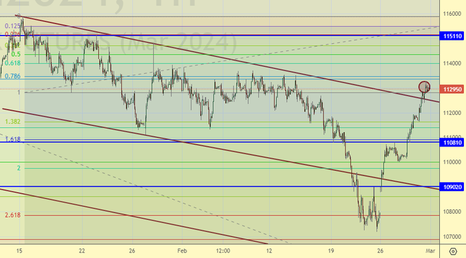 Очень удобное место по соотношению прибыль/риск для того, чтобы поверить в то, что рост далее продолжен не будет. Отметим, что если мы поднимемся выше 115000, то это приведет к продолжению восходящего движения. Очень большие сомнения в дальнейшем укреплении рубля и в дальнейшем росте российского рынка акций.