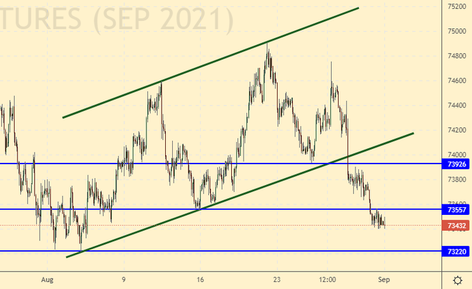 Продажа: нет. Кто в позиции от 73.69, держите стоп на 73.87. Цель: 68.00?!