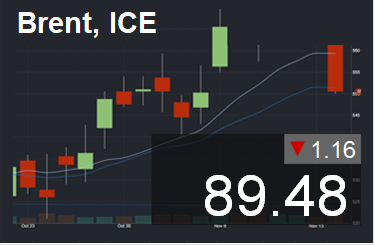 Цена в долларах за баррель. Для пересчета в доллары за тонну нефти марки Brent, необходимо цену умножить на 7,59.