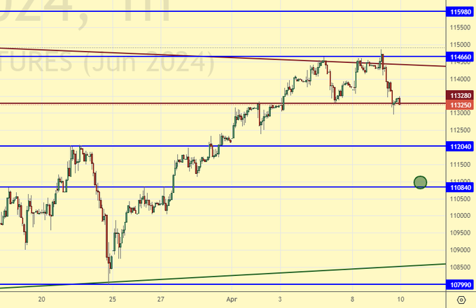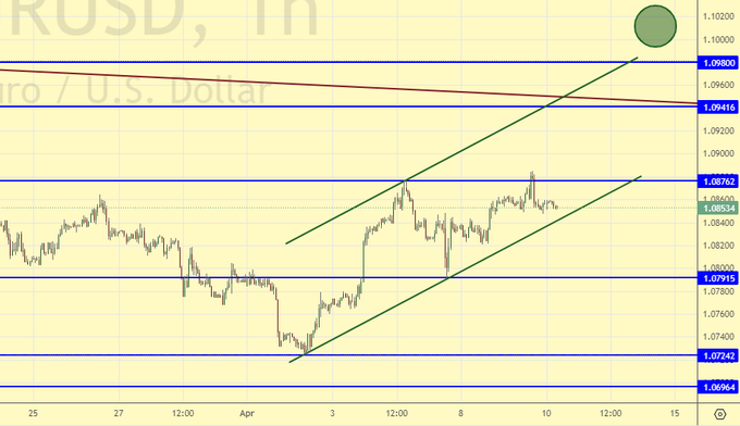 Не будем ничего делать. Завтра у нас заседание ЕЦБ, после него, возможно, будут движения. Сегодня данные по инфляции в США также способны увеличить волатильность на рынке. Отметим, что только в случае подъема рынка выше 1.1000, мы сможем говорить о начале бычьего рынка по евро.