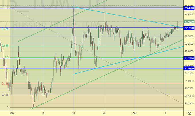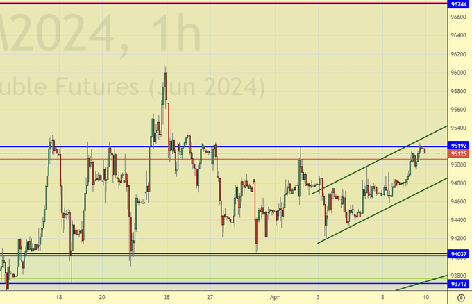 Для уверенности в то, что мы пошли к 95.50, надо проходить 93.50. Уровни технически интересны для покупок, однако, с учетом зарегулированного рынка рассчитывать на длинные тренд вверх (или вниз) мы не можем.