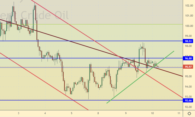 Пока быки не могут вернуть нефть выше уровня 100 долларов за баррель. Если сегодня, после выхода данных по запасам в США, не будет рывка вверх, то скорее всего рынок будет тяготеть к отметке 90, а возможно и 80 долларов за баррель.