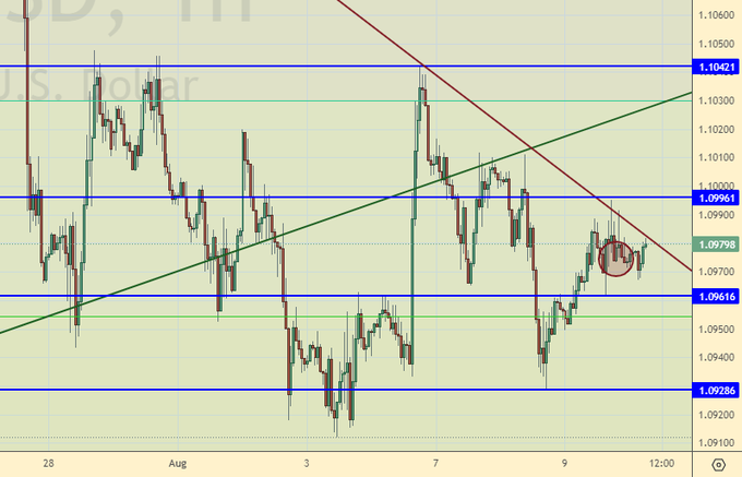 На рынке равновесие. Здесь имеет смысл попробовать войти в шорт. Если не получится, и мы отправимся выше 1.1000, то тогда придется снова покупать. Мы не должны пропустить ход к 1.2000.