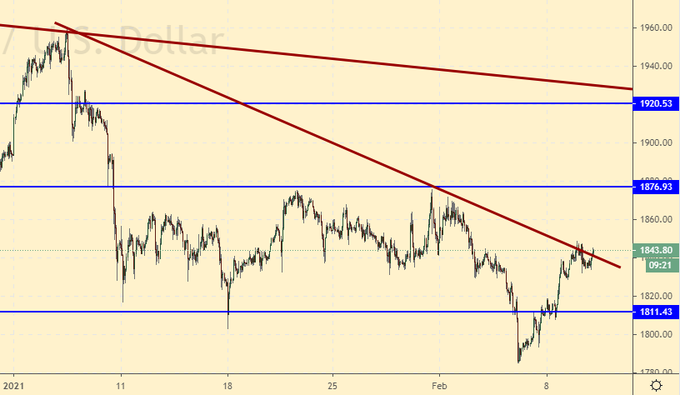 Наш стоп на 1852 пока держится. Основной вопрос ближайших дней: будут ли всем миров валить доллар или нет. Судя по тому, как евро бодренько оттолкнулось от 1.1950 сценарий при котором доллар будет утрачивать свою силу пока отвергать мы не можем. Если рынок поднимется выше 1860, можно купить.