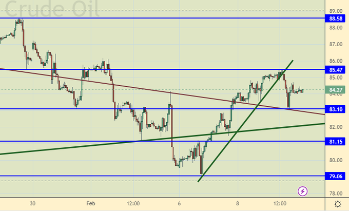 Если по какой-либо причине рынок поднимется выше 86.00 в текущей ситуации, то возникнет угроза прохода выше 90.00, что в свою очередь приведет к ходу на 110.0.