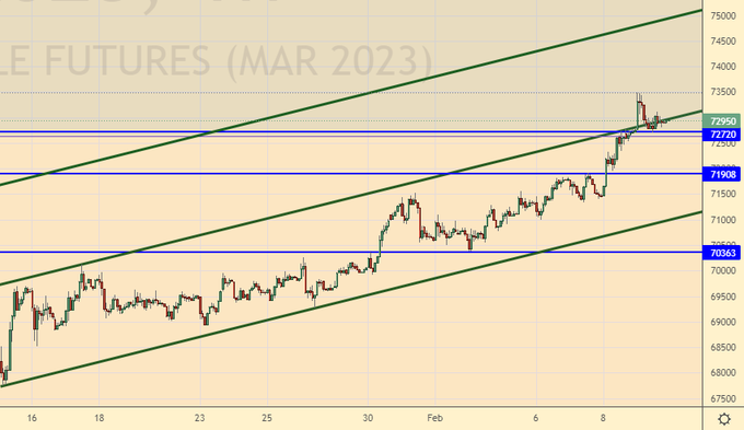 Покупка: нет. Кто в позиции от 71000, перенесите стоп на 72400. Цель: 88000.