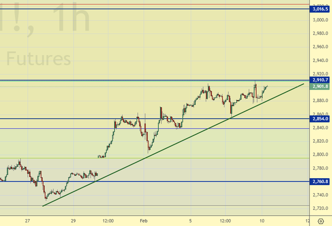 Покупка: нет. Кто в позиции от 2877, перенесите стоп на 2867. Цель: 3100 (15000?!!!).