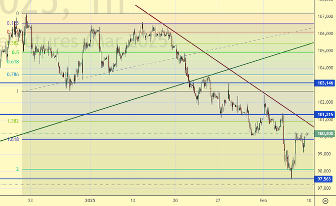 В пятницу писали: «Самые эпические (ужасные) развороты происходят на уровнях, которых никто не ждет. Нам придется маниакально подозревать рынок в падении с лобого уровня пока мы находимся под 102000». Это так и есть. Возможно, мы сегодня будем оптимистами, но пока нам не выкатят какое-то соглашение, желательно на бумаге и с его фото в прессе, где весь текст разборчиво написан, тяжко нам будет быть оптимистами на долгом периоде времени.