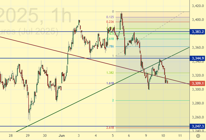 Как красиво мы начали рисковать импульс вниз. Это же Айвазовский, с его волнами. Раз так, то весьма вероятно, что мы придем к 3247. Дальнейшее снижение будет также возможно после небольшой коррекции.