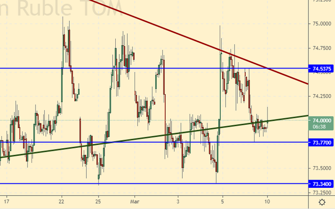 Покупка: в случае роста выше 74.70. Стоп: 74.10. Цель: 85.00. Сейчас. Стоп: 73.60. Цель: 85.00. Кто в позиции от 74.20, держите стоп на 73.60. Цель: 85.00.