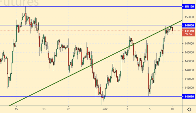 Страшно красивый рост. Продаем. Слишком быстрое восстановление от 141000, явная перекупленность на часовках. Риск здесь невелик, поэтому можно агрессивно. Зеленая линия, это пробитая линия поддержки растущего канала.