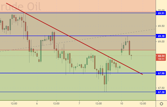 Продажа: при касании 67.30. Стоп: 68.70. Цель: 60.00.