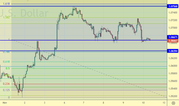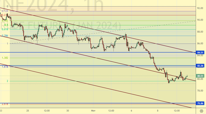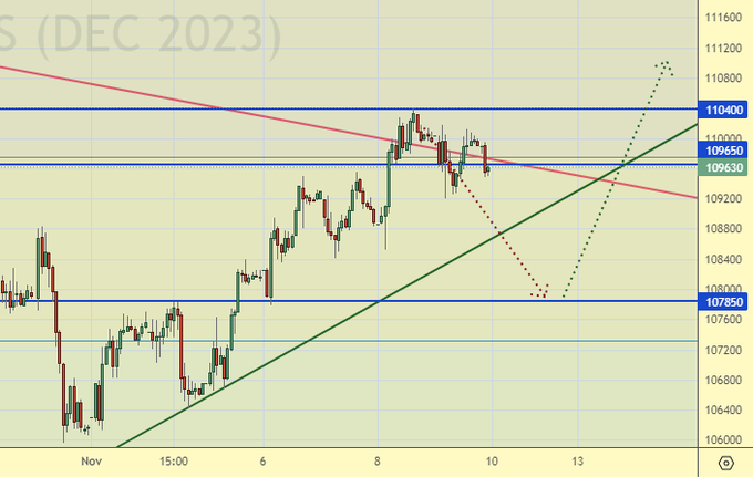 Видим, что пока пара не может пройти выше 1.0760, что создает предпосылки для отката к 1.0600. Торопиться быкам некуда, они могут себе это позволить. С течением времени ставки на то, что доллар будет слабеть, из-за начала цикла снижения ставок, будут только расти. Но это история уже 24-го года.
