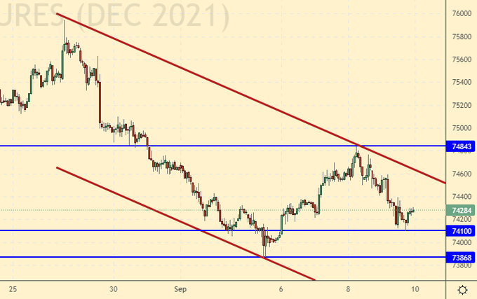 Продажа: при подъеме к 74500. Стоп: 74870. Цель: 68000?!