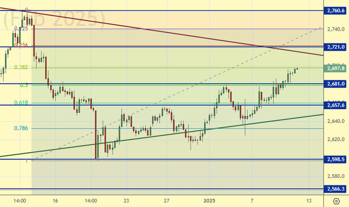 Продажа: сейчас (2697). Стоп: 2705. Цель: 2400.