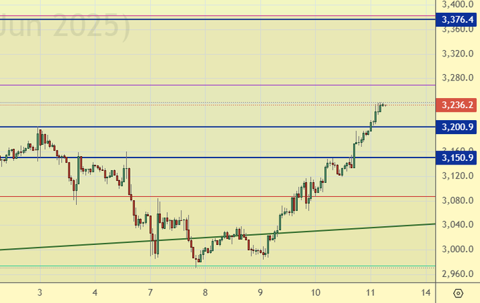 Покупка: при откате к 3100. Стоп: 3050. Цель: 3375.