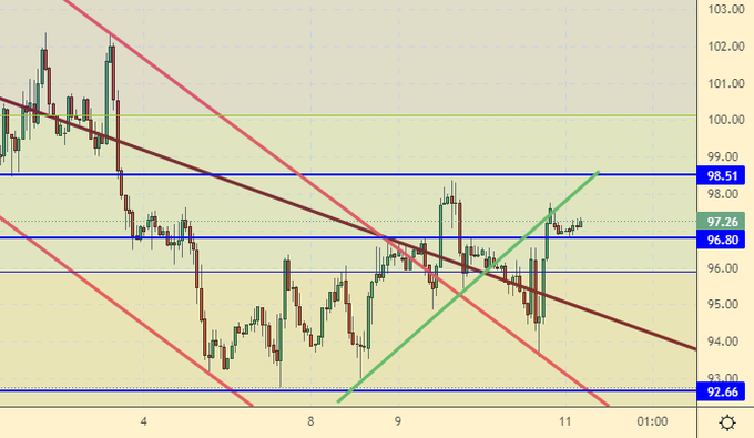 В целом рынок можно признать сбалансированным. Не исключено, что быки предпримут попытку пробиться выше 100.00, но, скорее всего, она будет обречена на провал.