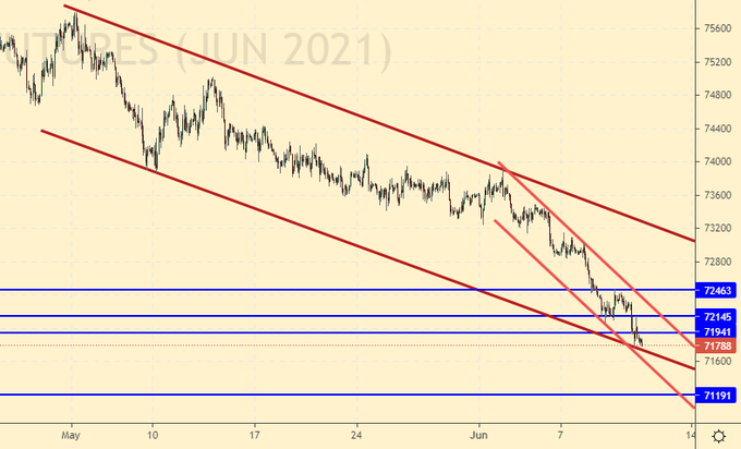 Продажа: нет. Кто в позиции от 73.20, перенесите стоп на 72.60. Цель: 71.20.