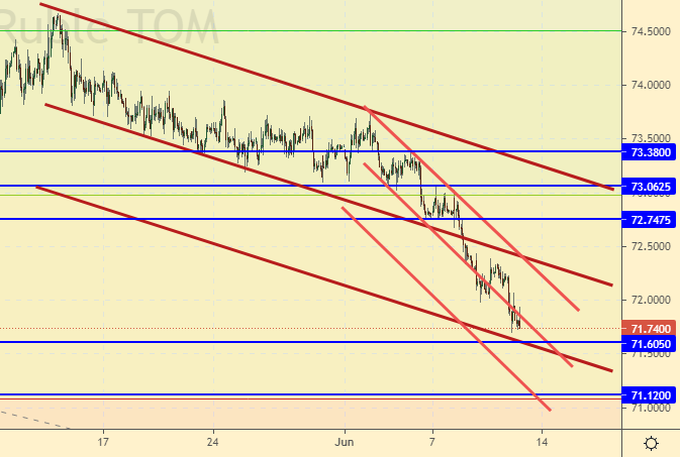 Сегодня у нас центральное событие: решение ЦБ РФ по ставке. Скорее всего, независимо от того насколько ставка будет поднята на 0,5, 1 или 1.5 процента, нас ждет удар в 71.20, после чего последует отскок. Далее рынок замрет. А в следующую среду трейдеры будут слушать Пауэлла с открытыми ртами, стараясь понять есть ли у него мандат от элит на ослабление доллара или всё идет в рабочем режиме и для начала будет отменена (сокращена) программа выкупа активов на 120 млрд. долларов в месяц.