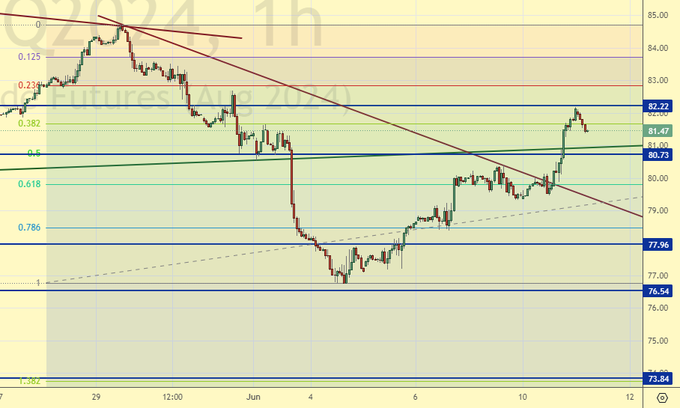 Рынок снова выше 80.00, однако пока еще есть сомнения в том, что он продолжит расти. Но, даже если мы пойдем вверх остается не ясным насколько высока вероятность роста предложения со стороны ОПЕК+ этой осенью. Объявят ли арабы очередной поход против американских сланцевиков, поступившись при этом текущими прибылями? Если нет, то шансы на то, что мы вновь окажемся на 90.00 вырастут.