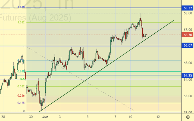 США и Китай пытаются прервать торговую войну. При этом нельзя говорить, что Штаты не правы, так как торговый баланс явно в сторону Китая. Если сегодня данные по инфляции покажут рост в США, вот тогда всем станет ясно, что ФРС не будет дальше снижать ставку. Мы можем увидеть не закат а восход доллара, а вот всё остальное превратиться в пыль. В том числе и нефть.