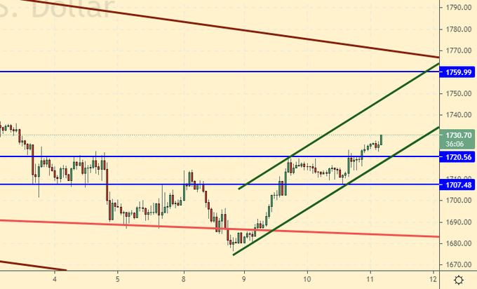 Покупка: нет. Кто вошел от 1710, перенесите стоп на 1711. Цель: 1760.