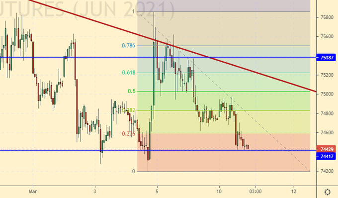 Покупка: в случае роста выше 74900. Стоп: 74300. Цель: 80000 (может быть пересмотрена).