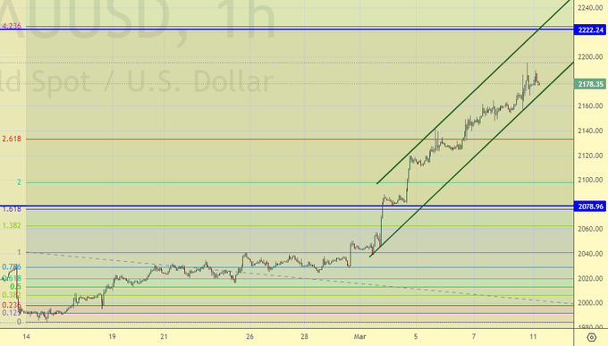 Скорее всего золото доберется до четырех двоек: 2222, после чего последует откат. Если рынок откатит к 2100, то этим можно будет воспользоваться для покупок.