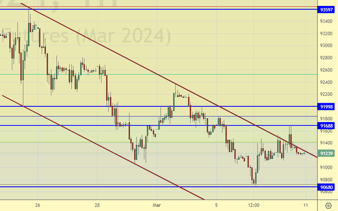 Продажа: нет. Кто в позиции от 92.19, перенесите стоп на 91.25. Цель: 85.00.