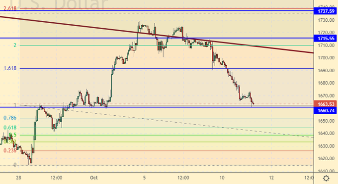 Отличные уровни для тактической покупки. Однонаправленный откат привел к перепроданности. Рынку как минимум надо отдохнуть, поэтому мы можем рассчитывать на приостановку и отскок. Если упадем ниже 1650, то на рынок придет еще большее число продавцов.